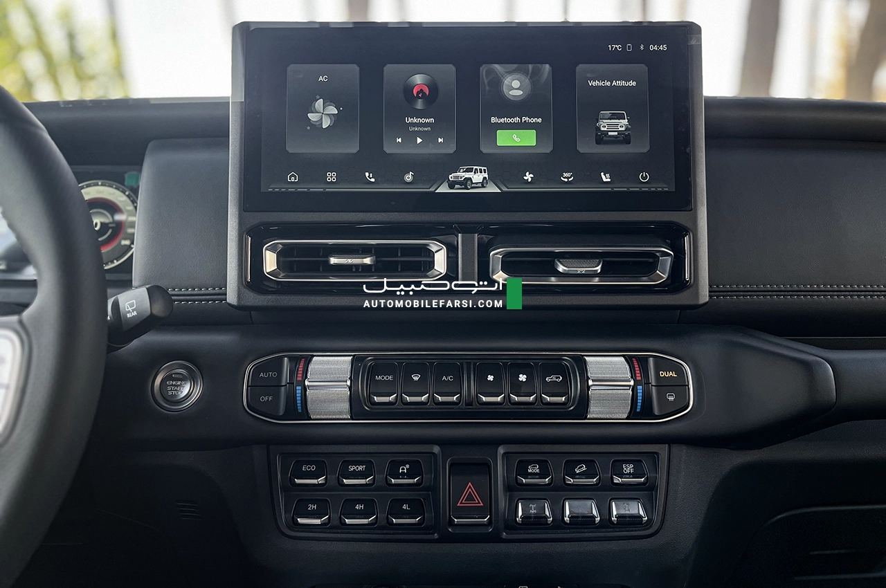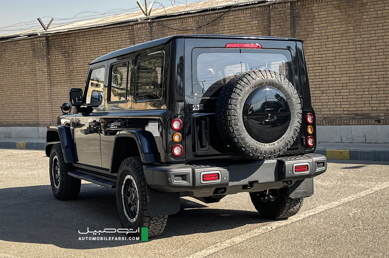 در بخش عقب، چراغهای عمودی، درب جانبی صندوق و زاپاس نصبشده، هویت آفرودی و ماجراجویانه خودرو را تکمیل میکنند. سپر عقب نیز مانند جلو، ساده اما مستحکم طراحیشده و هماهنگی کلی بدنه را حفظ کرده است.