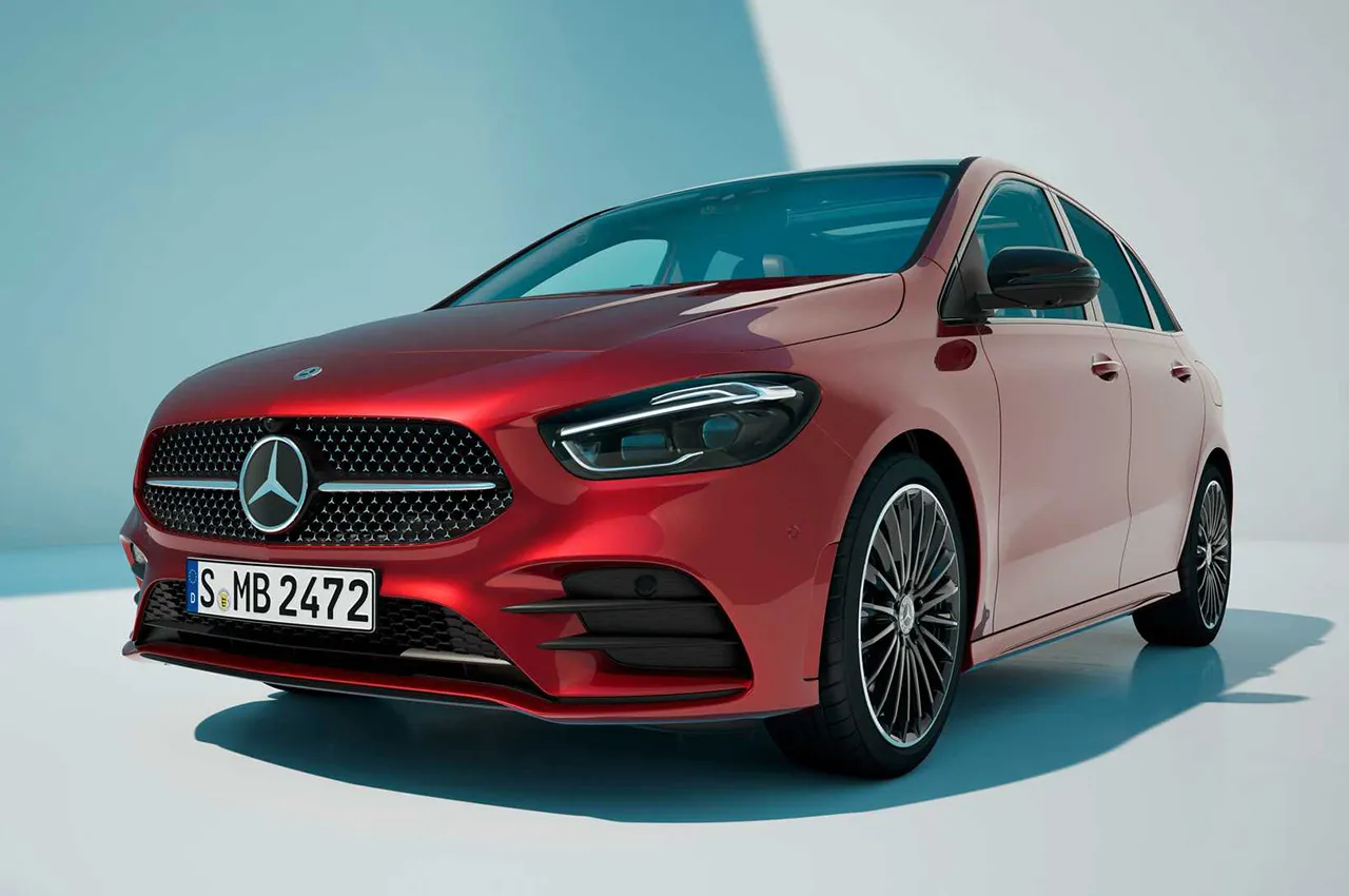 مانند گذشته مدلهای دیزل 180، 200 و 220 به همراه مدلهای بنزینی 180، 200، 220 و 250 بدون تغییر در خروجی قابل خریداری است. تنها مدل B 250 e به صورت پلاگین هایبرید به جای نسخه تمام الکتریک جایگزین شده که از پیشرانه 1.3 لیتر و موتور بهینه شده برقی استفاده میکند که مجموعا 218 اسببخار قدرت و 450 نیوتنمتر گشتاور تولید میکند. این خودرو در حالت برقی و چرخه WLTP میتواند بین 66 تا 77 کیلومتر پیمایش داشته باشد. باطری این خودرو را میتوان با شارژر 11 و 22 کیلووات شارژ کرد که در حالت 22 کیلووات تنها 25 دقیقه زمان لازم است تا باطری از 10 درصد به 80 درصد برسد.