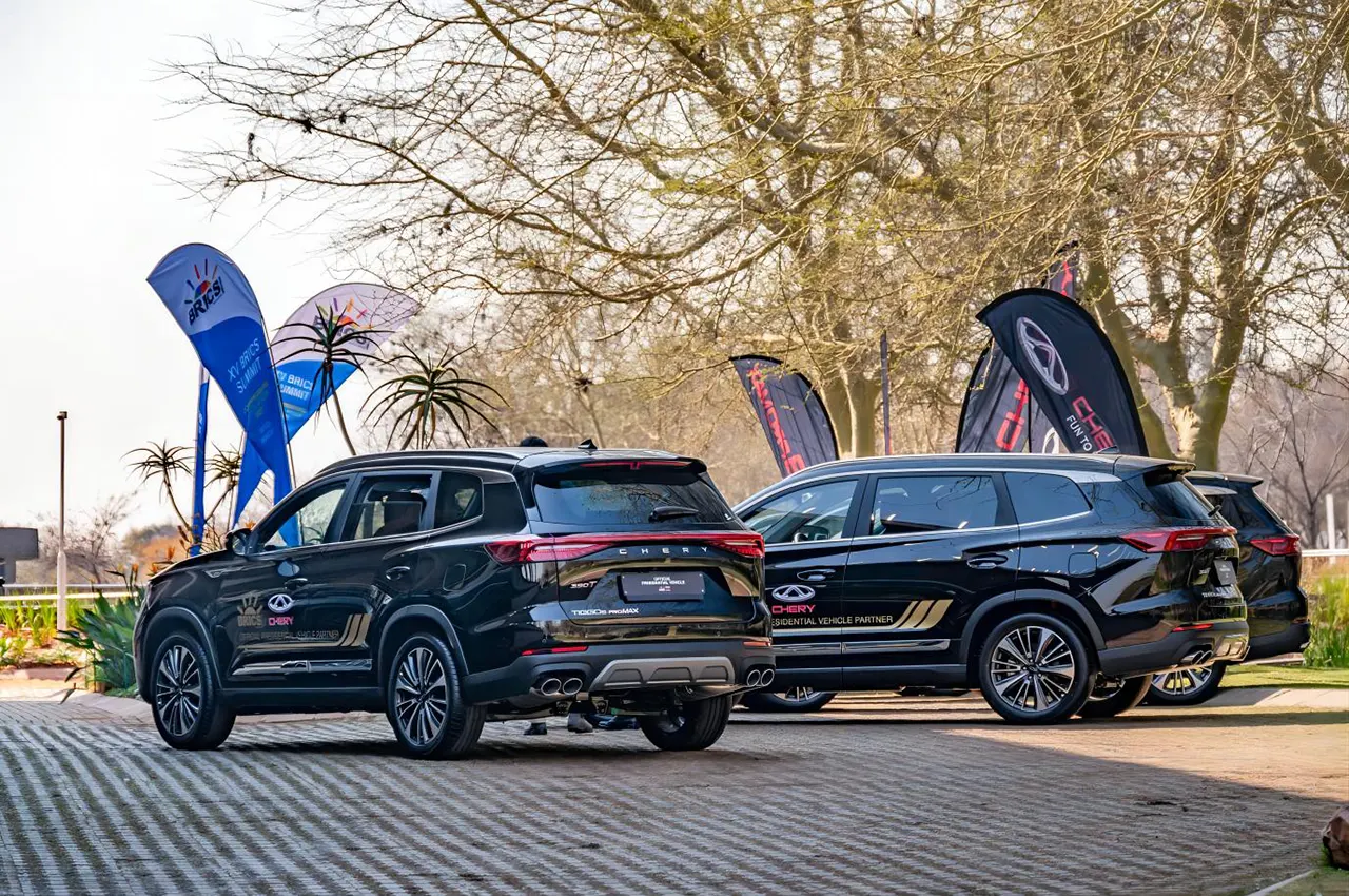 خودروی تیگو 8 پرو مکس برای نشست BRICS، بهعنوان وسیله نقلیه رسمی این رویداد انتخاب شده است. تیگو8 پرومکس با موتور توربو شارژ 2 لیتری قویترین موتور در بازار آفریقای جنوبی شناخته میشود. این خودرو دارای ویژگیهای منحصربهفردی است که حملونقل لوکس و ایمن در این رویداد جهانی را تضمین میکند. تیگو 8 پرو مکس با صندلیهای چرم، دریچههای مجزا تهویههوا برای هر سه ردیف صندلی، سیستم صوتی SONY که تجربهای کمنظیر در دنیای صدا محسوب میشود و همچنین کنترل مداوم سرعت با کمک رادار است که حس لوکس بودن را را به نمایندگان ارشد و مهمانان نشست BRICS ارائه مینماید. افزون بر این موارد، تیگو 8 پرو مکس دارای امکاناتی نظیر سیستم هشدار در صورت وجود مانع در اطراف خودرو برای افزایش ایمنی است.