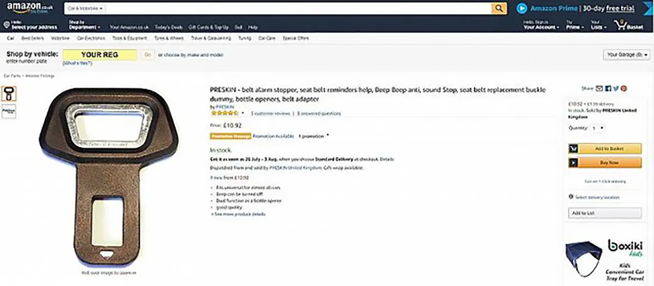 نتیجه بررسی یورونیوز نشان میدهد که گیرههایی به شکل سگکهای کمربند ایمنی در سایتهای فروش اینترنتی Amazon و Ebay به فروش میرسند که فاقد کمربند ایمنی هستند.