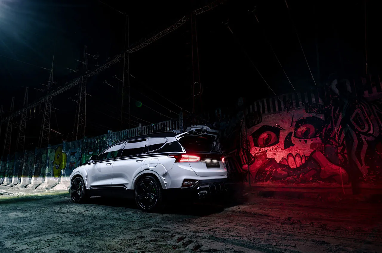 این تغییرات شامل باز طراحی سپرهای جلو و عقب، ورودی هوای بسیار بزرگ منقش به لوگو کارلکس دیزاین، اسپویلر و دیفیوزر، خروجی اگزوزهای چهارگانه، رینگهای آلیاژی 20 اینچی و تم دو رنگ سیاه-سفید است که منجر به شکلگیری نسخه منحصر به فردی از سانتافه شده است.