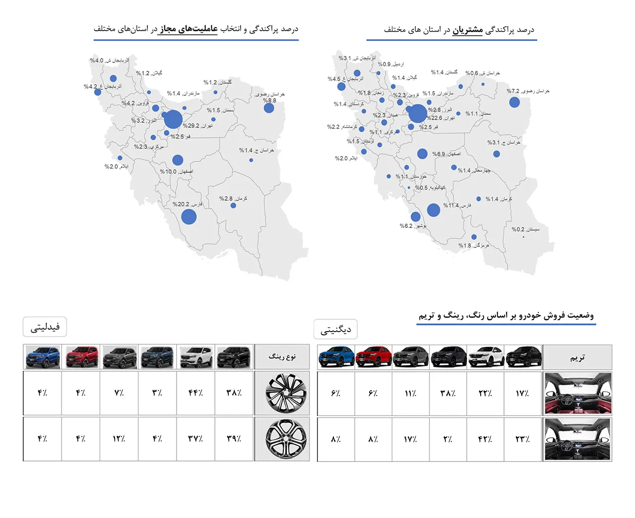 در جدیدترین طرح فروش فیدلیتی و دیگنیتی بهمن موتور استان های تهران، فارس و خراسان رضوی، بیشترین خریداران را دارا بودند و به طور کل متقاضیان از 31 استان کشور و 170شهرستان موفق به ثبت نام شدند.
