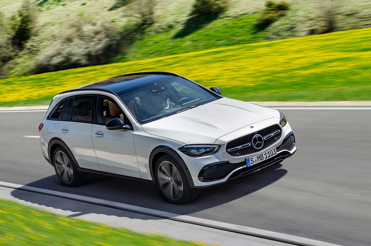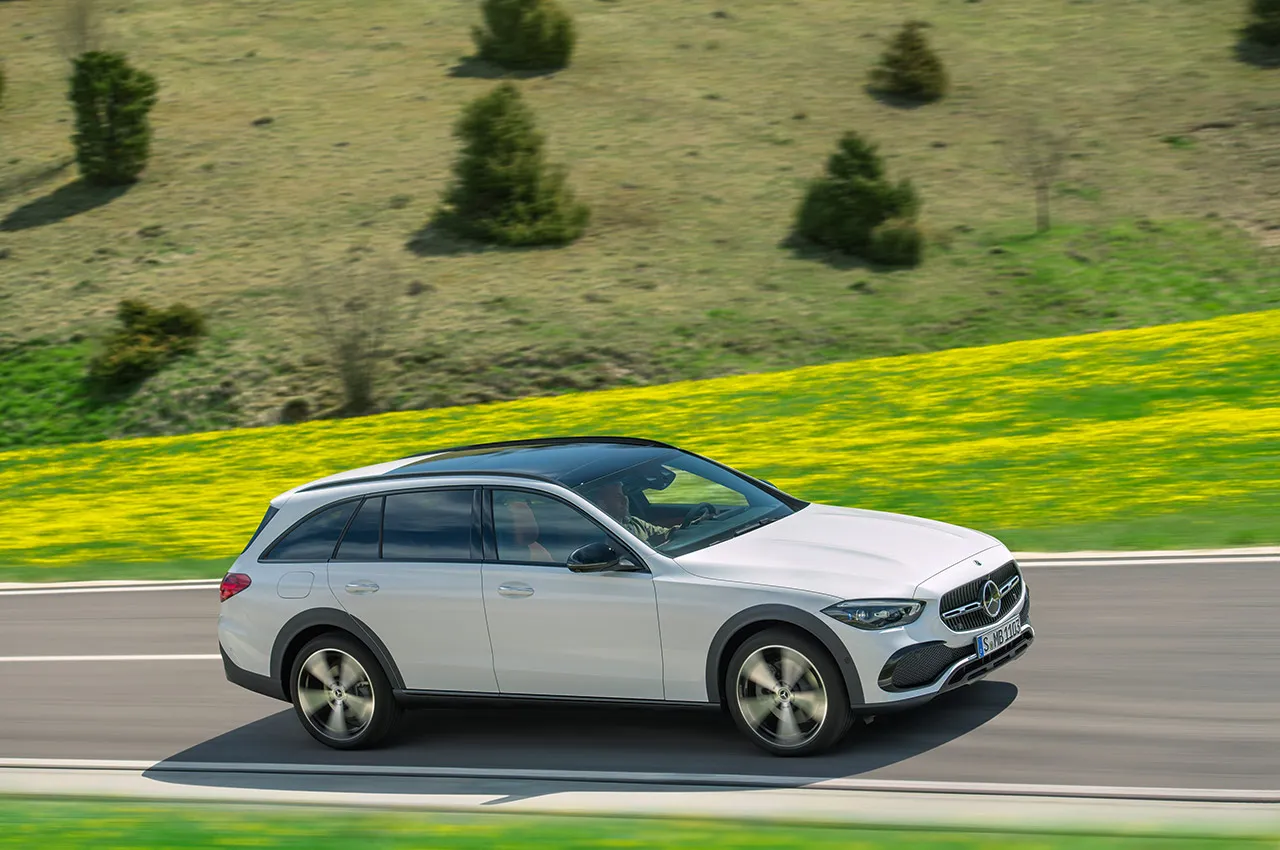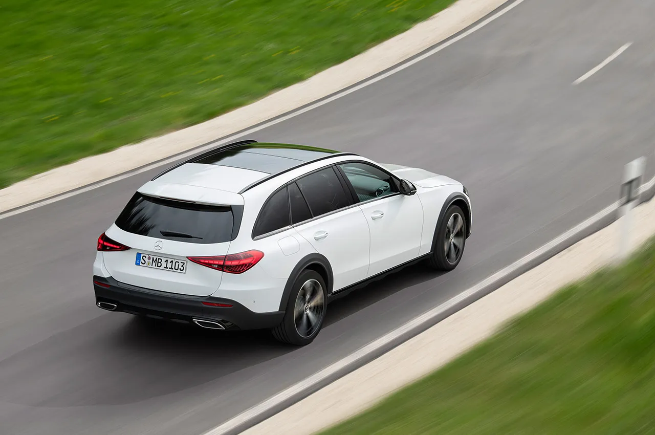 مانند نسخه آلترین E کلاس، این محصول جدید مرسدس نیز از گلگیرهای برجستهای با لبههای پلاستیکی، سپرهای متمایز از نسخه واگن (Estate) و ارتفاع بیشتر برخوردار شده تا بتواند خود را در میان خودروهایی که قابلیت آفرود دارند جای دهد. افزون بر اینها مرسدسبنز یک صفحه محافظ نیز در زیر سپر جلو تعبیه کرده تا زیر خودرو را از آسیبهای احتمالی مسیرهای سخت و نامطلوب حفظ کند. همچنین سیستم انتقال قدرت در C کلاس آلترین به طور استاندارد از نوع تمامچرخ محرک است.