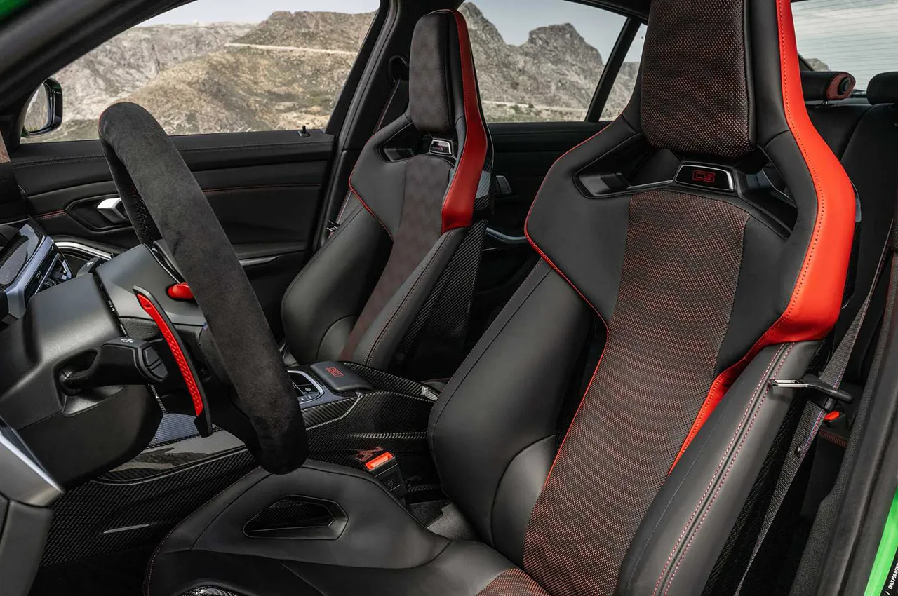 این خودرو به رنگ Signal Green از بخش ایندیویژال مزین شده که در ترکیب با چراغهای زرد رنگ که بیشتر در خودروهای مسابقهای استفاده میشود نمایی اسپرتتر پیدا کرده است. مانند کوپه اسپرت، جلوپنجره بزرگ این نمونه نیز از خطوط قرمز رنگ بهره میبرد. بامو در کنار این رنگ، پالت دیگری شامل Black Sapphire، Brooklyn Grey metallic ،Frozen Solid White در اختیار خریداران میگذارد. صندلیها با چرم مرینو با تم قرمز پوشیده شدهاند و لوگو CS بر روی آنها حک شده. فرمان از جنس آلکانترا، رکابهای نورانی با نوشته M3 CS و کمربندهای سه نقطهای با طرح M از دیگر ویژگیهای کابین این خودرو به حساب میآیند.