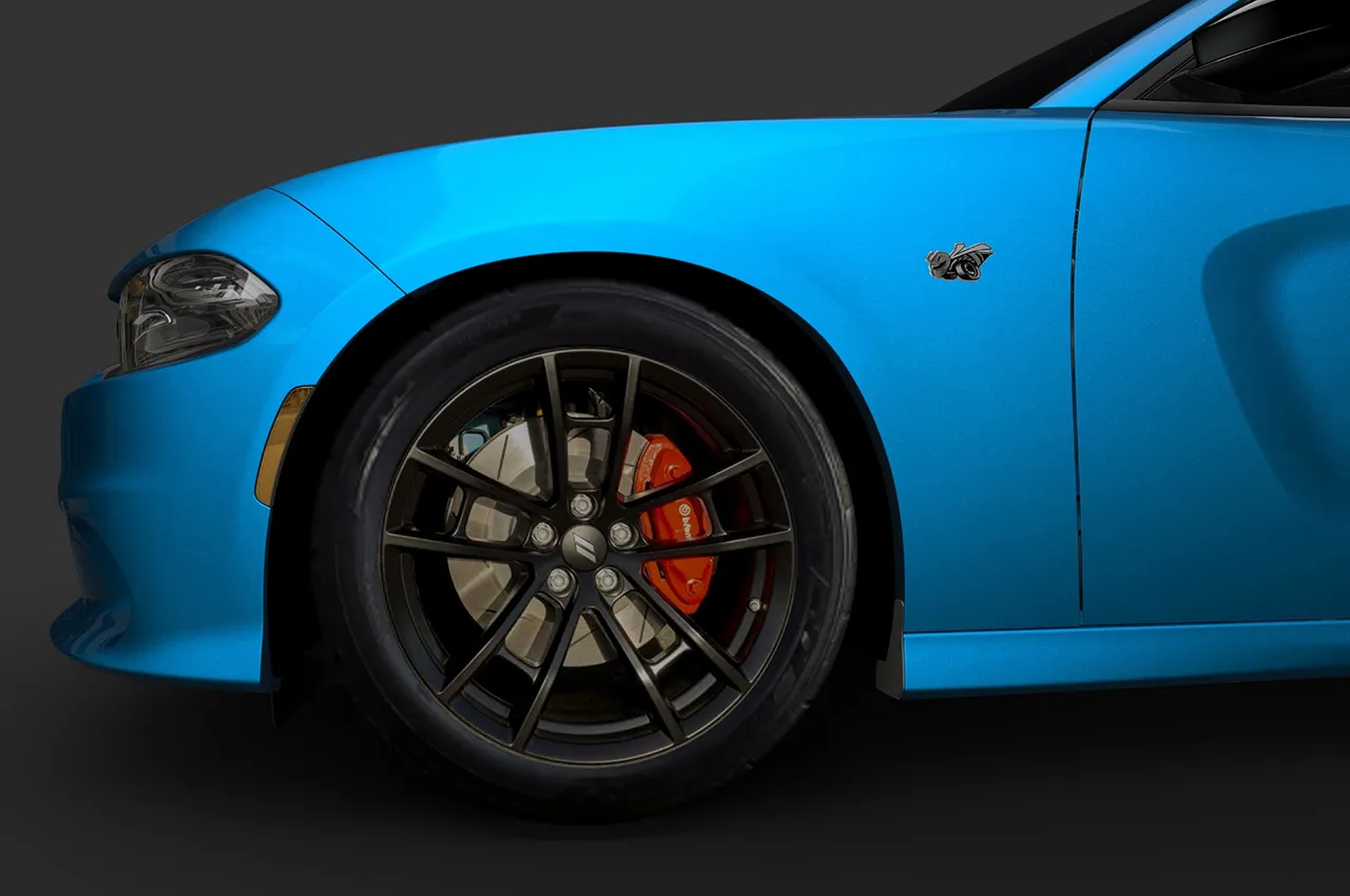 بر روی کاپوت سه ورودی هوا برای خنککاری پیشرانه حجیم به همراه پینهای نگهدارنده کاپوت وجود دارد که یکی از موارد تشخیص این مدل از دیگر چارجرها است. در عقب نیز اگزوزهای سیاه رنگ جلوهای شوم و ترسناک به این نما داده تا بخش ظاهری تکمیل شود. در هر دو مدل و هر دو رنگ، کلیپرهای ترمز چهار پیستون برمبو به رنگ قرمز خواهد بود. اگر شخصی با این موارد نتوانست سوپر بی را از دیگر مدلها تشخیص دهد، بج زنبور مخصوص این خودرو در جلو پنجره و گلگیرها کاملا خود نمایی میکند. اگر آنها را از دست بدهد، برچسب روی کاپوت و برچسبهای روی گلگیر عقب کاملا این خودرو را از دیگر نمونهها متمایز میکند. داخل خودرو نیز در کنار چرم و جیر با نشانگرهای سوپر بی پوشیده شده تا روح اسپت در کنار محیط آرام کابین وجود داشته باشد.