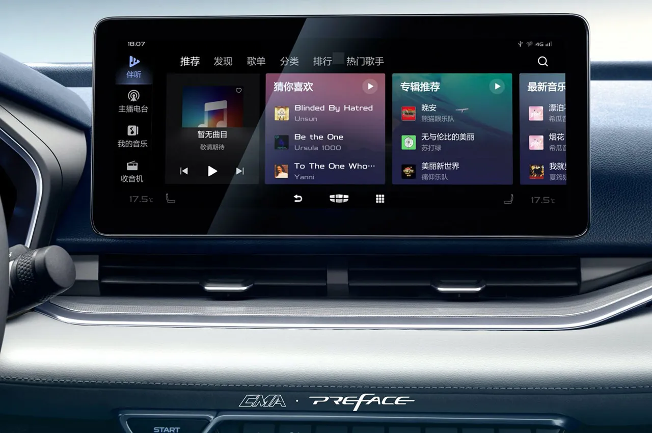 در مرکز داشبورد جیلی پرفیس، یک نمایشگر عریض 12.3 اینچی است که به سیستم اطلاعات و سرگرمی هوشمند GKUI شرکت جیلی مجهز شده که گرافیک آن قابل تنظیم است. بر اساس آنچه در تصاویر مشخص است، طراحی هر یک از اجزا با وسواس و ظرافت خاصی صورت گرفته است. کلیدهای سیستم تهویه مطبوع زیر ورودیهای هوا قرار گرفته و ظاهرا سیستم تهویه مطبوع جیلی پرفیس به دو سیستم تصفیه هوا و معطر سازی هوا مجهز شده است.