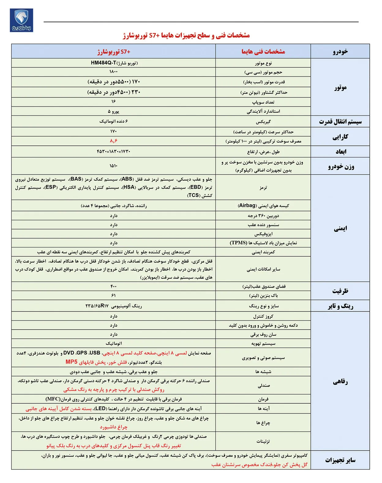 اگرچه در بخش قوای فنی تغییراتی در هایما S7 پلاس نسبت به نسخه فعلی ایجاد نشده است، اما آن طور که ایران خودرو اعلام کرده مصرف سوخت ترکیبی این کراساوور از 9.6 لیتر به 8.6 لیتر کاهش پیدا کرده است.