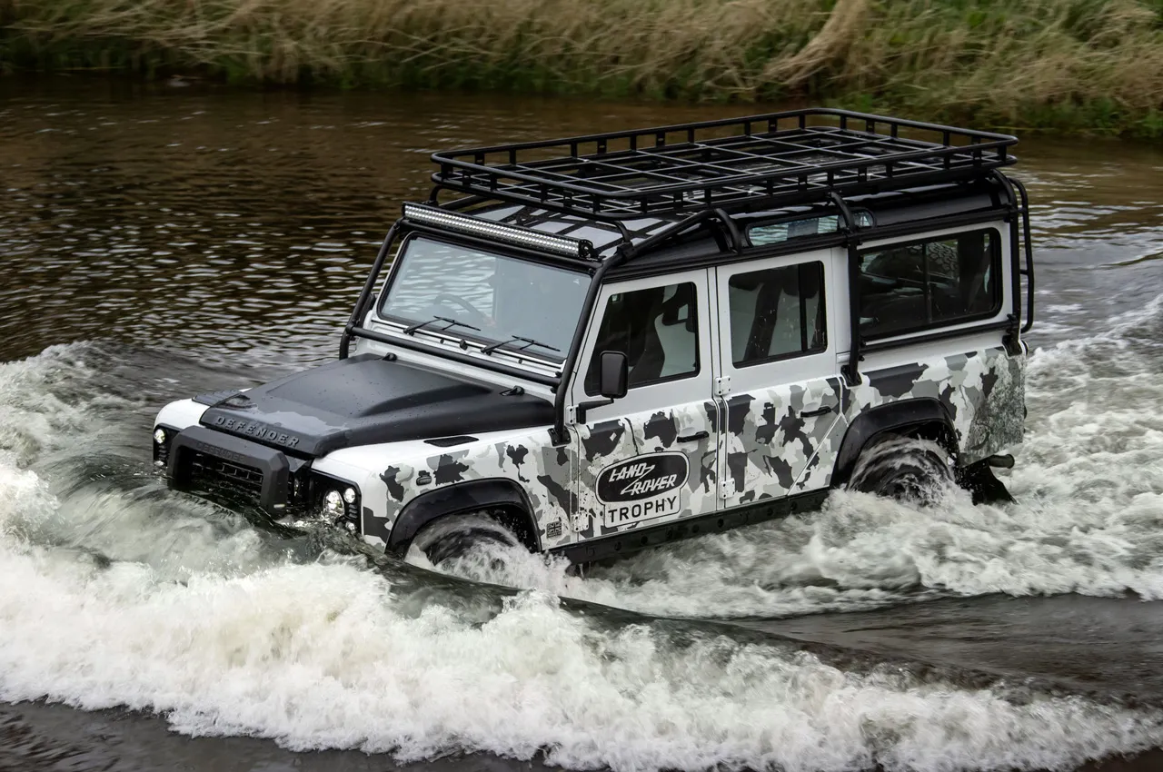 نسخه دیفندر تولید محدود در دو مدل 90، 110 استیشن واگن و 110 پیکاپ دوکابین که سال گذشته ارائه نشده بود تولید میشود. همانطور که در بالا اشاره شد این خودرو از رنگ زرد استفاده نمیکند و در نگاه اول شما را یاد لباسهای نظامی مناطق سردسیر میاندازد. اما این طرحها Camo نیست، بلکه تمام 23 مکانی بر روی بدنه نقاشی شده که این خودرو در 70 سال تاریخ خود در آنها حضور داشته است.