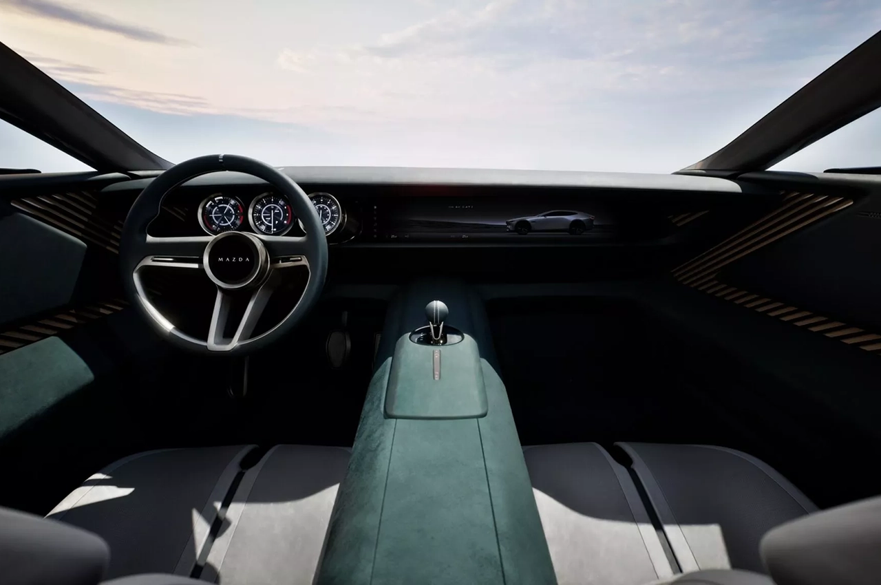 مزدا برخلاف بسیاری از خودروسازان که امروزه کابین را به نمایشگرهای متعدد و فضای سرد دیجیتالی سپردهاند، تلاش کرده گرما و اصالت طراحی ژاپنی را حفظ کند. در پشت فرمان، یک پنل دیجیتال سهقسمتی با گرافیکهای کلاسیک و الهامگرفته از نشانگرهای آنالوگ قدیمی دیده میشود. این نمایشگر با یک صفحهی کوچک روی فرمان ترکیب شده که اطلاعات کلیدی را در اختیار راننده میگذارد. طراحی مینیمال داشبورد با نمایشگر مرکزی و یک صفحه اختصاصی برای سرنشین جلو ادامه یافته است. در میانه کابین، کنسول مرکزی پهن با دستهدندهای مشابه توپ بیسبال جلوهای خاص به فضا داده است. صندلیهای عقب بهصورت دو تکی طراحی شدهاند و پوشش دورنگ کابین با تریمهای خاص و مواد لوکس ترکیبی از راحتی و اصالت را القا میکند.