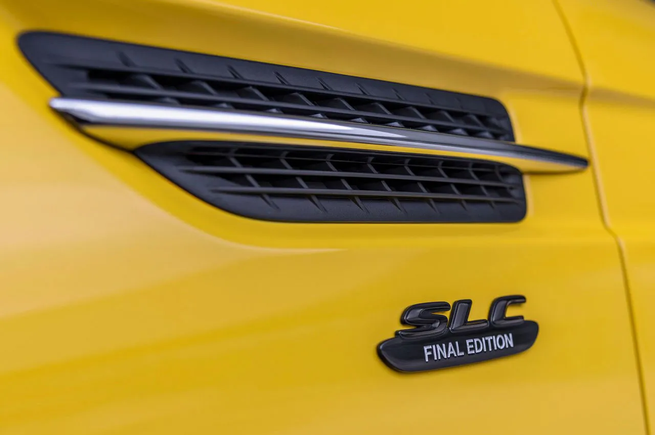 نسخه پایانی SLC که مرسدسبنز خود آن را Final Edition مینامد تنها شامل تغییراتی ظاهری نیست. این پیشنهاد به صورت یک پکیج روی مدلهای SLC300 و Mercedes-AMG SLC43 ارائه میشود که هر کدام از تریمهای ویژهای سود میبرند. مرسدسبنز SLC300 برای بازار اروپا با رنگ سان یلو و برای بازار آمریکا با رنگ خاکستری سلنتاین عرضه میشود. هر دو نسخه بر اساس پکیج هیجان انگیز AMG توسعه یافتهاند و از نشانههای ظاهری آن بهره میبرند. از طرفی نشانههایی با عبارت Final Edition روی بدنه این اتومبیل تعبیه شده و آن را به راحتی از نسخههای دیگر متمایز میسازد. رینگهای 18 اینچی AMG از دیگر ویژگیهای ظاهری این نسخهها محسوب میشود.
