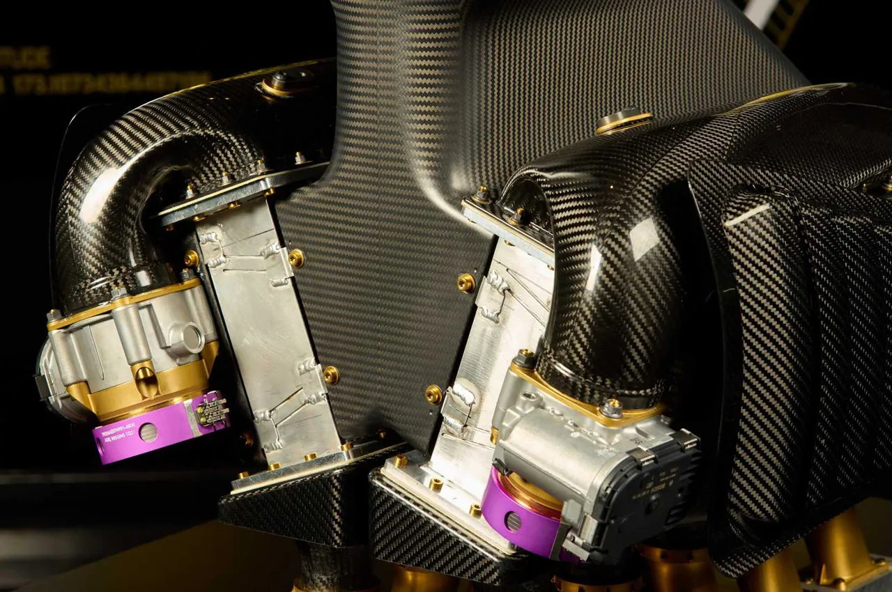 قوای محرکه این هایپرکار، از نوع 10 سیلندر 4 لیتر توئین توربو است که با همکاری نیل بروان توسعه پیدا کرده و از نظر شرکت یک انقلاب در این صنعت به حساب میآید. خروجی این پیشرانه 986 اسببخار قدرت و 910 نیوتنمتر گشتاور است که ماکزیمم قدرت در دور موتور 9 هزار و ماکزیمم گشتاور در 7250 دور بر دقیقه در اختیار راننده قرار میگیرد. این نیرو و توان توسط گیربکس 8 سرعته ریکاردو به چرخهای عقب منتقل میشود. رد لاین این پیشرانه 10 هزار دور بر دقیقه عنوان شده است.
