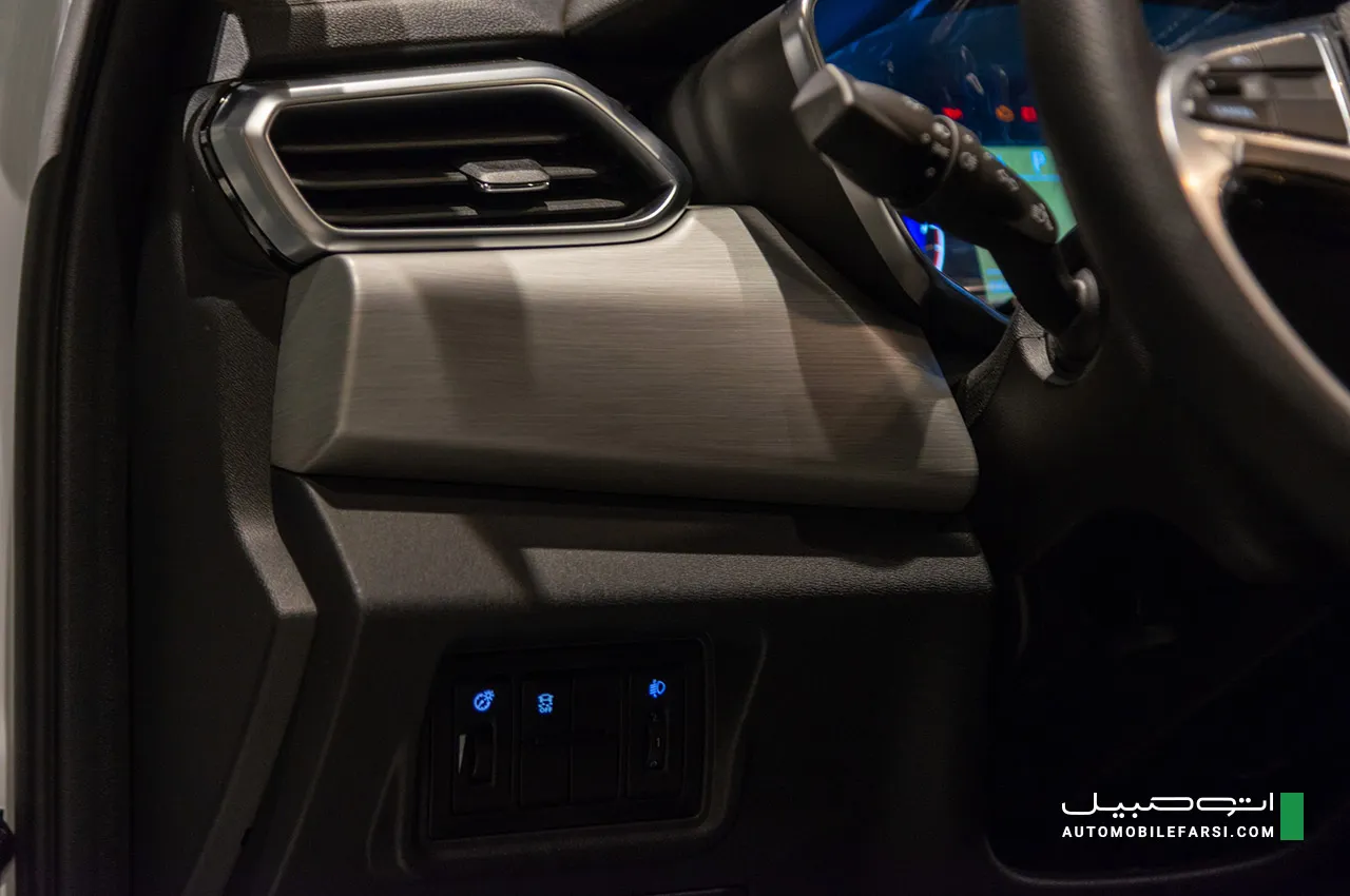 داشبورد تیگارد X35 طراحی مدرن و قابل قبولی دارد. یک نمایشگر 8 اینچی که ابعاد آن چندان بزرگ نیست، به سبک خودروهای امروز در قسمت بالایی داشبورد قرار گرفته و پایینتر از آن کنترلهای سیستم تهویه، با طراحی خاص و منحصر به فرد کمی به سمت راننده متمایل شده است. فرمان به صورت Dکات (ته صاف) طراحی شده و خبر از صفحه کیلومتر دیجیتالی در این خودرو نیست. پوشش صندلیها ترکیبی از چرم و پارچه است و تنظیم آنها به صورت دستی امکانپذیر است.