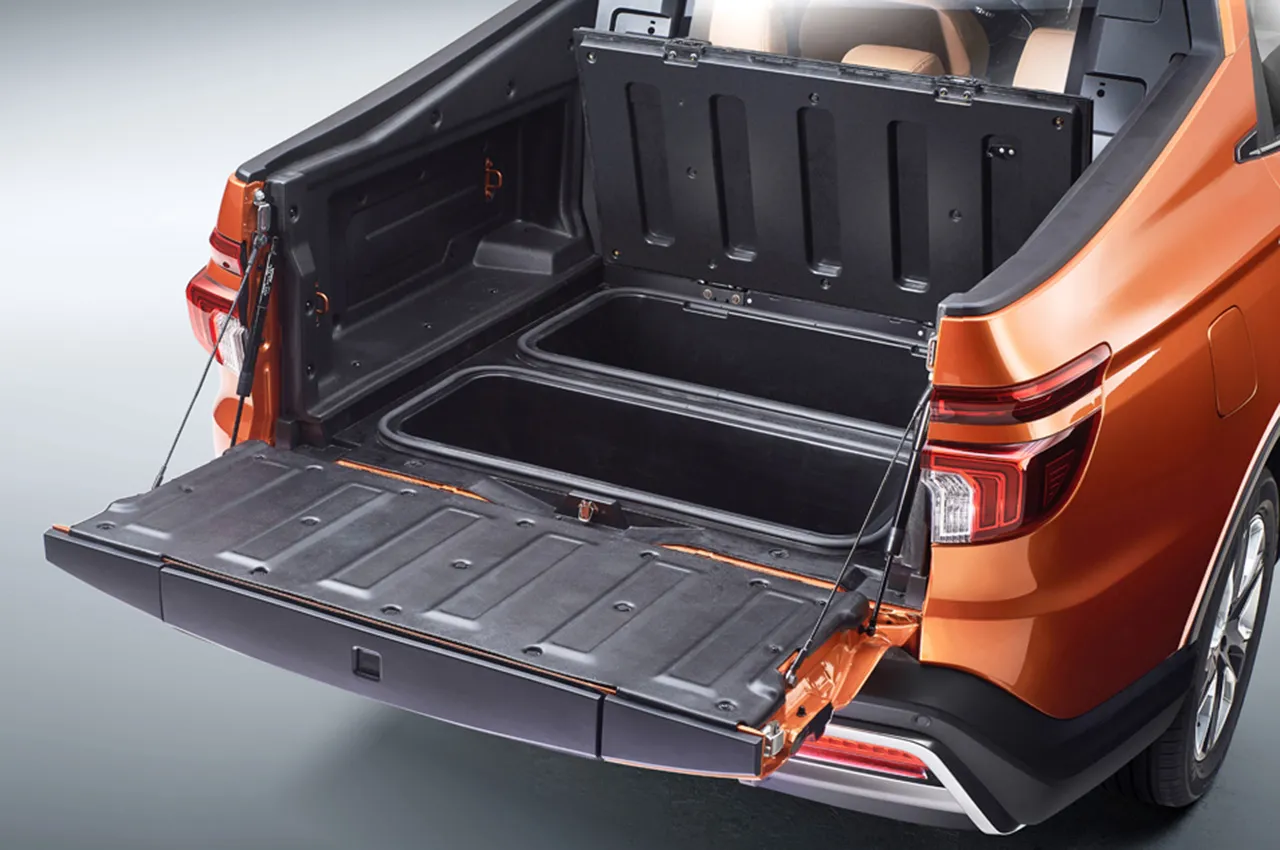 جداسازی فضای بار از کابین به وسیله شیشه بزرگ پشت صندلیهای عقب محقق شده است. برآمدگی عقب اتومبیل افزایش یافته و به جای صندوق عقب، محفظه بار این پیکاپ به طول 1114 میلیمتر و عرض 1438 میلیمتر تعبیه شده است.