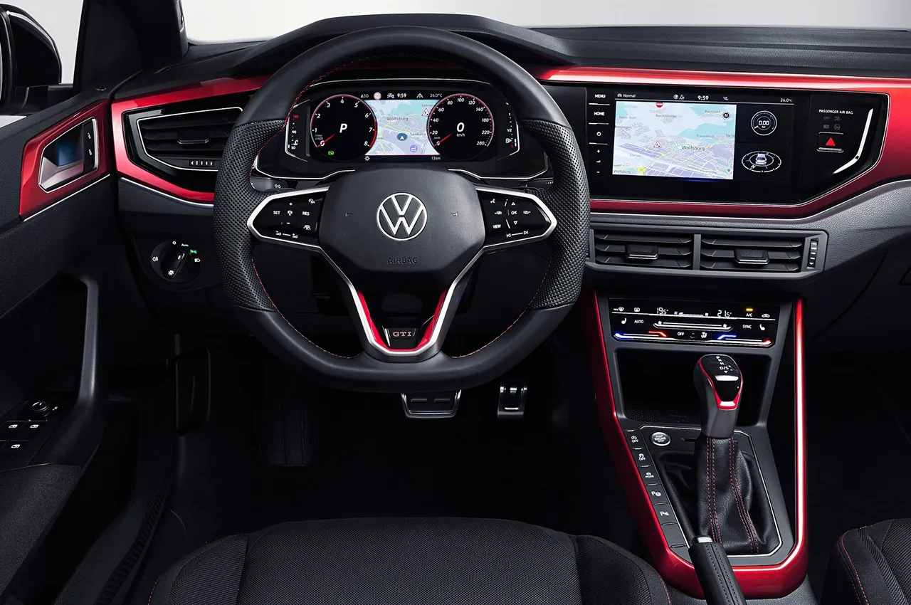 فضای اتاق پولو GTI نیز از این بهروزرسانی بینصیب نمانده است. باز هم همانطور که میتوانستیم پیشبینی صفحه کیلومتر تمام دیجیتال و پنل کنترل سیستم تهویه مطبوعی شبیه به نمونهای که در تیگوان و آرتئون جدید دیدهایم در پولو جیتیآی فیسلیفت تعبیه شدهاند. همچنین صفحهنمایش لمسی 8 اینچی برای سیستم اطلاعات و سرگرمی آن در نظر گرفته شده است. صندلیهای پارچهای زیبا و دوستداشتنی نیز از گزینههای پیش روی خریداران پولو GTI جدید خواهند بود.