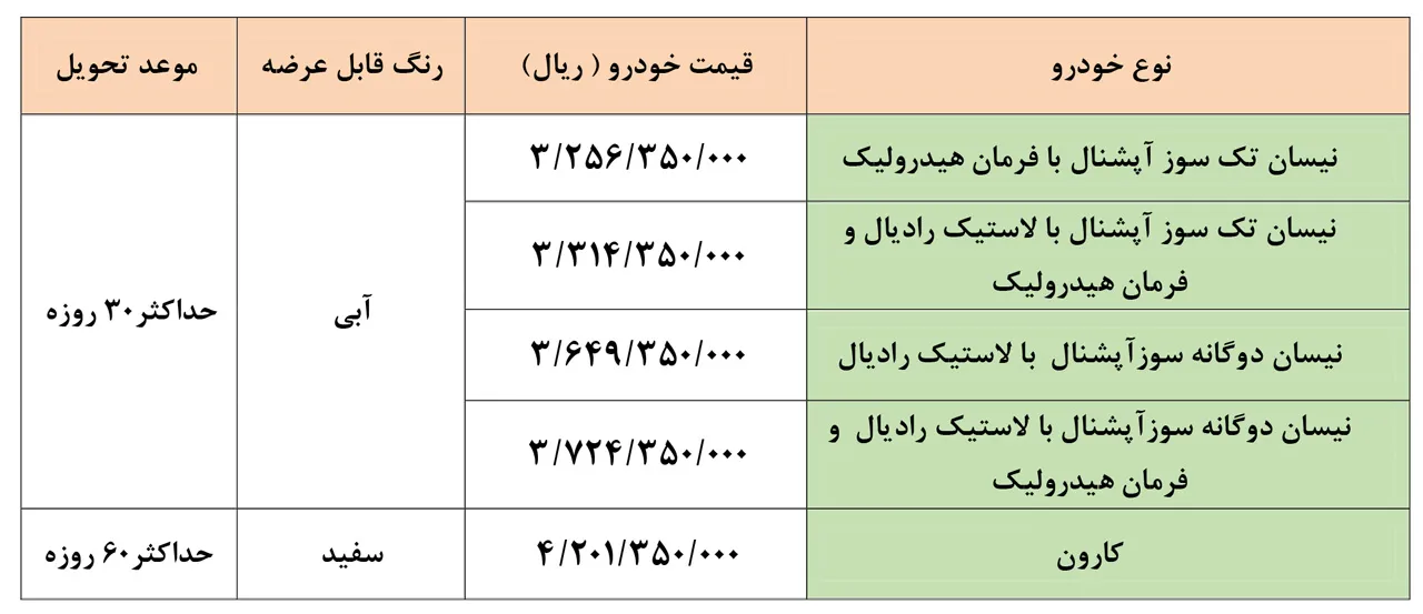 در این روش فروش متقاضیان میتوانند از ساعت ۱۱ صبح روز چهارشنبه مورخ ۳۰ شهریور ۱۴۰۱ تا زمان تکمیل ظرفیت با ورود به سامانه یکپارچه تخصیص خودرو به آدرس https://sale.iranecar.com پس از ثبت اطلاعات شخصی و دریافت کد کاربری و رمز عبوراخذ شده از سایت، نسبت به انتخاب خودرو و ثبت نام اقدام نمایند.