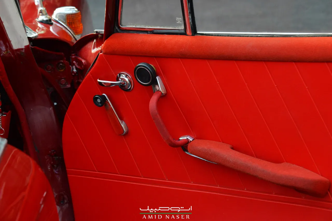 در بدو ورود به داخل کابین، با فضایی متفاوت مواجه میشوید که به سلیقه مالک اتومبیل دچار تغییراتی نیز شده است. استفاده از چرم قرمز برای روکش صندلیها، موکت کف، حتی کمربندهای ایمنی که با رنگ بدنه خودرو بهطور کامل هماهنگ هستند اولین نکته قابل توجه در فضای داخلی کابین است. با اینکه W110 در دسته اتومبیلهای متوسط قرار گرفته است اما از نظر فضاسازی برای سرنشینان، بسیار خوب عمل کرده و فضا برای 5 سرنشین بزرگسال ایدهآل و کافی است. در همین راستا، صندلیهای بزرگ ردیف جلو، همچون مبل راحتی تمام نقاط بدن را در بر میگیرد. از دیگر جذابیتهای داخل کابین این مدل، فرمانی استخوانی است که در دل آن به طرز هنرمندانهای اهرم فلزی بوق و همچنین در قسمت کناری اهرم تعویض دنده جای داده شده است. نشانگرهای پشت فرمان نیز بر خلاف سایر خودروها، در قابی عمودی شکل قرار گرفته است که خود باعث ایجاد فضایی منحصر به فرد در کابین شده است. سقف باز شونده فلزی، ساعت آنالوگ وسیستم تهویه جداگانه برای سرنشینان ردیف جلو از امکانات استاندارد این اتومبیل محسوب میشود.