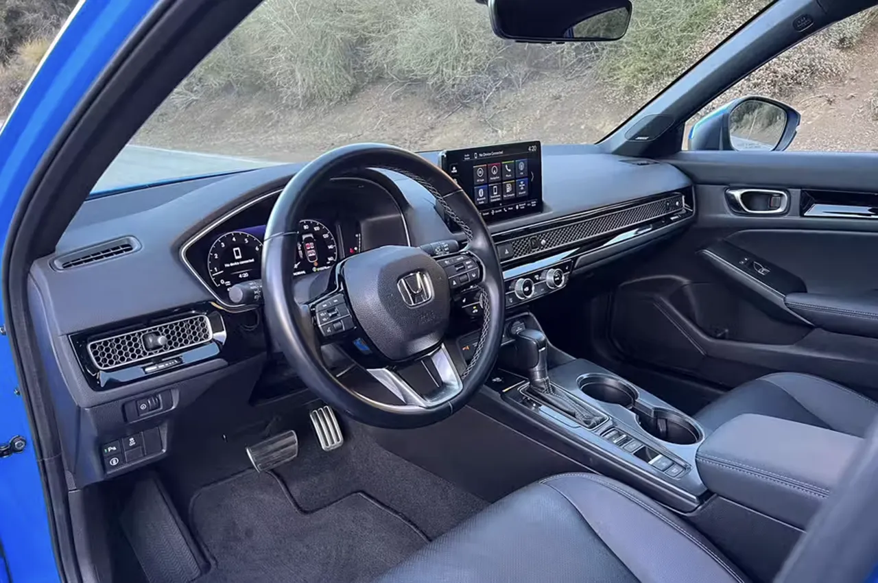 از لحاظ تناسبات هاچبکها گاهی وقتها ناموزون به نظر میرسند چون عموما از سدانها کوتاهترند و طراحها هم هرچه که از انتهای خودرو باقی میماند را میتراشند. نتیجهاش هم میشود ظاهری خپله و نخراشیده. سیویک ۲۰۲۴ تا حد زیادی توانسته از این دام بگریزد. به نظر من که یکی از جذابترین سیویکهای هاچبک در طول تاریخ است. مسألهای که مخصوصا در کابین به چشم میآید. با انتخاب رده تجهیزاتی EX-L و اسپرت تورینگ، پوشش چرمی به کابین اضافه میشود. علاوه بر این، کیفیت متریالها، قطعات متالیک، شبکه زنبوری فلزی روی دریچههای تهویه و دکمههای باکلاس تنظیم صدای پخش و سیستم تهویه، همگی زیبا و چشمنوازند. مشکی رایجترین رنگ برای کابین است اما شما میتوانید طوسی و چند رنگ دیگر بدنه را هم سفارش بدهید.