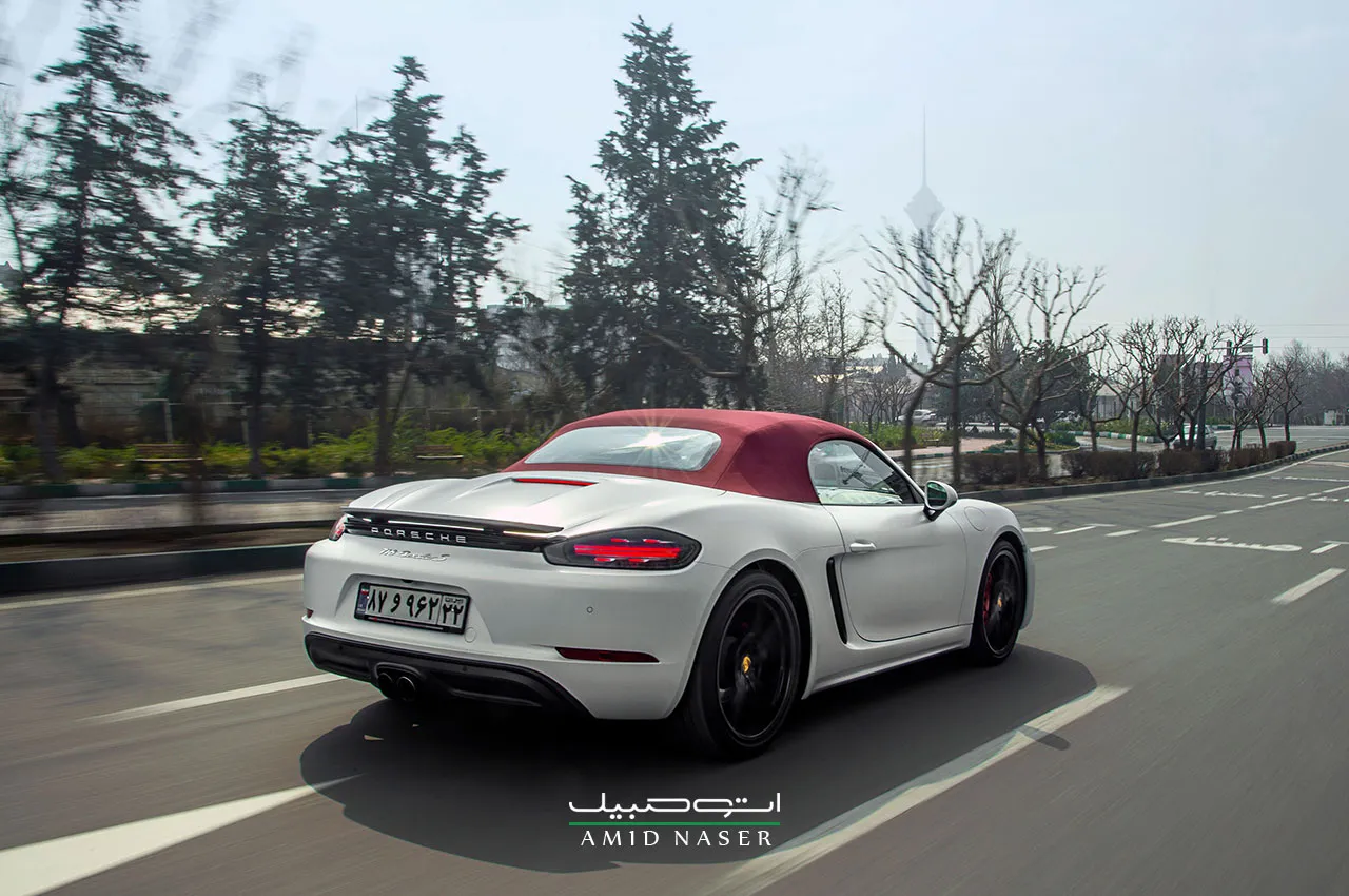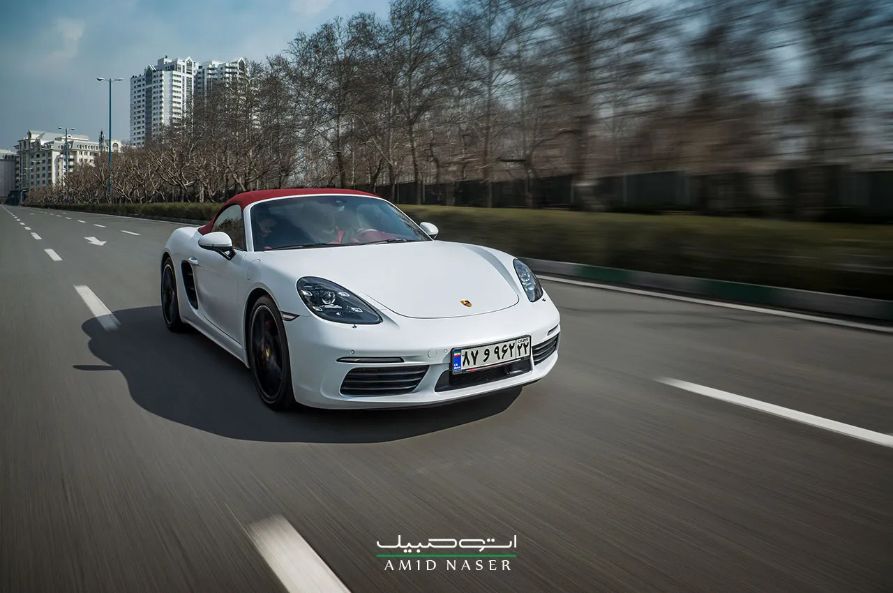 در زمان رانندگی در حالتهای اسپرت، کوبش سیستم تعلیق و خشک شدن آن که به اقتضای این حالت رانندگی صورت میگیرد کاملا ملموس است و به نظر میرسد برای دستاندازها و چالههای خیابانهای تهران، حالت مناسبی برای رانندگی نباشد. یکی از ویژگیهای بسیار قابل توجه 718، فرمان کاملا در دست و گوش به فرمان است. 718 باکستر عبور از هر پیچ و مانوری در زمان رانندگی به خصوص در رانندگی اسپرت را به راحتی پشت سر میگذارد به گونهای که حتی فکر جدا شدن چرخها از را باید از سر بیرون کرد! در کنار این رانندگی اسپرت ترمزهای بسیار قوی باکستر نیز در زمان خطر و نیاز فراتر از انتظار ظاهر شده و 718 را روی زمین میخکوب خواهند کرد.